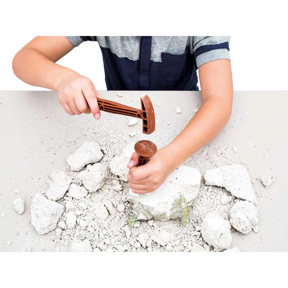 Dit Archeospel T-Rex bevat een cool fluorescerend skelet dat oplicht in het donker. Met dit spel kan je terugreizen door de tijd en de ‘fossiele’ resten van een heuse T-Rex opgraven. Met het beiteltje en hamer graaf je de resten op en daarna kun jij het skelet in elkaar zetten. Oefen alvast als archeoloog!