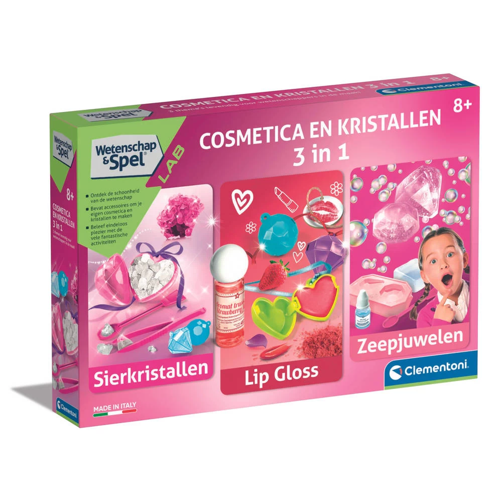 Ontdek de wondere wereld van de wetenschap met deze cosmetica en kristallen 3-in-1 set van Clementoni.