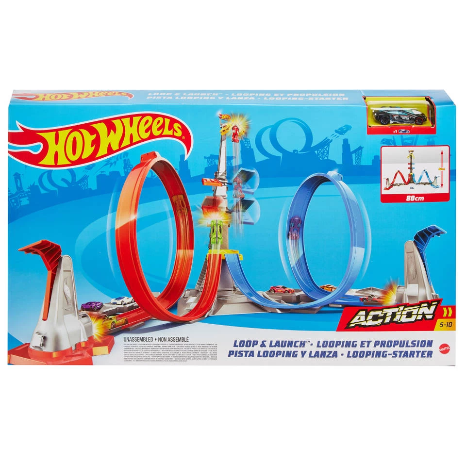 Met deze Hot Wheels looping en lanceringsbaanset til je het racen met je Hot Wheels wagens naar een hoger niveau.