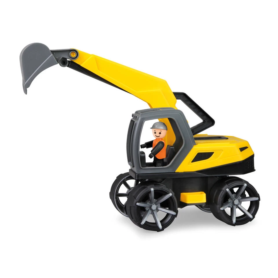 - Het speelgoedvoertuig beschikt over een beweegbare graafarm en actiefiguur, afsluitbaar chassis en een trailerkoppeling.