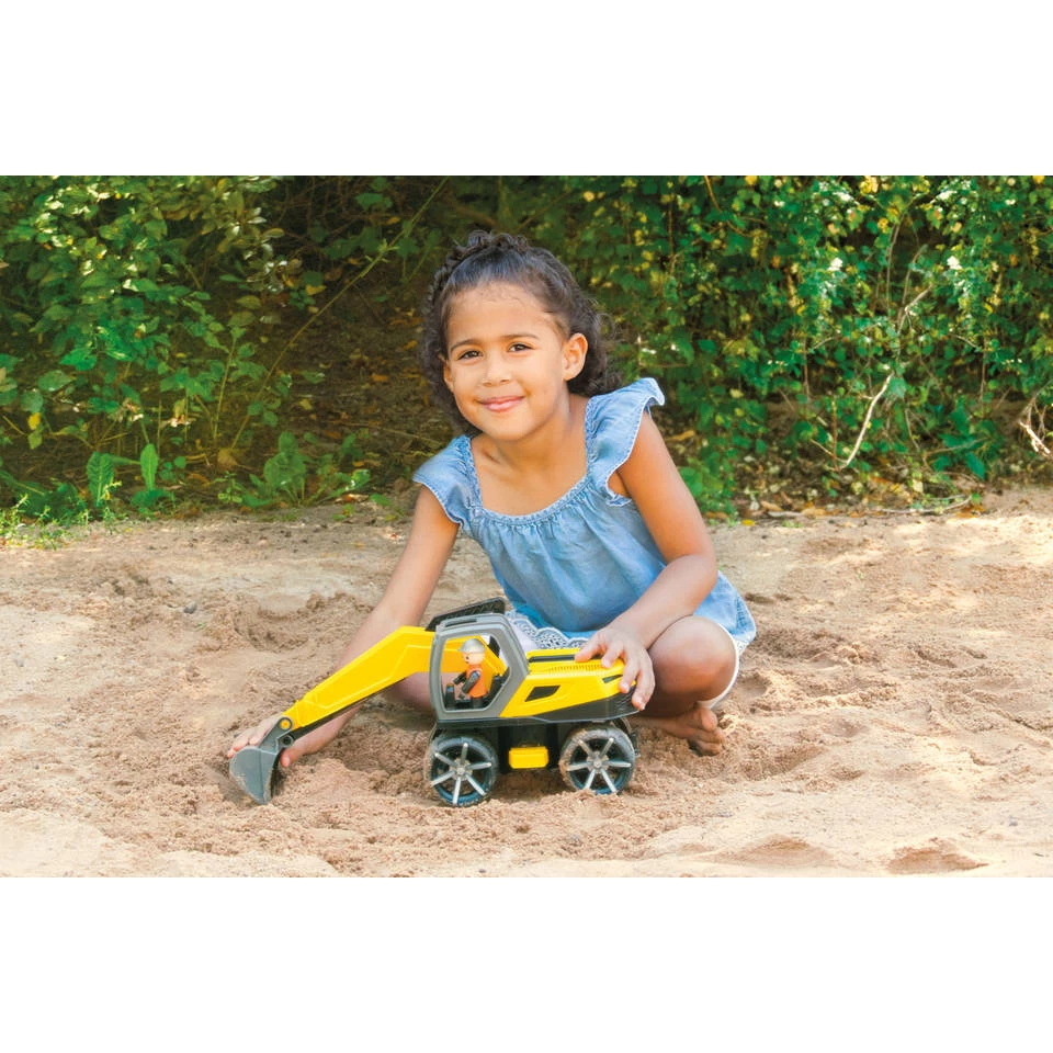 Deze graafmachine van Lena is een bouwvoertuig van 35 cm groot. Het is gemaakt van hoogwaardig, duurzaam polypropyleen en is uitgerust met gegalvaniseerde stalen assen en rubberen banden. Dit speelgoedvoertuig beschikt over een beweegbare graafarm en actiefiguur, afsluitbaar chassis en een trailerkoppeling. De speelgoedgraafmachine is ideaal voor in de zandbak, de tuin of op het strand.