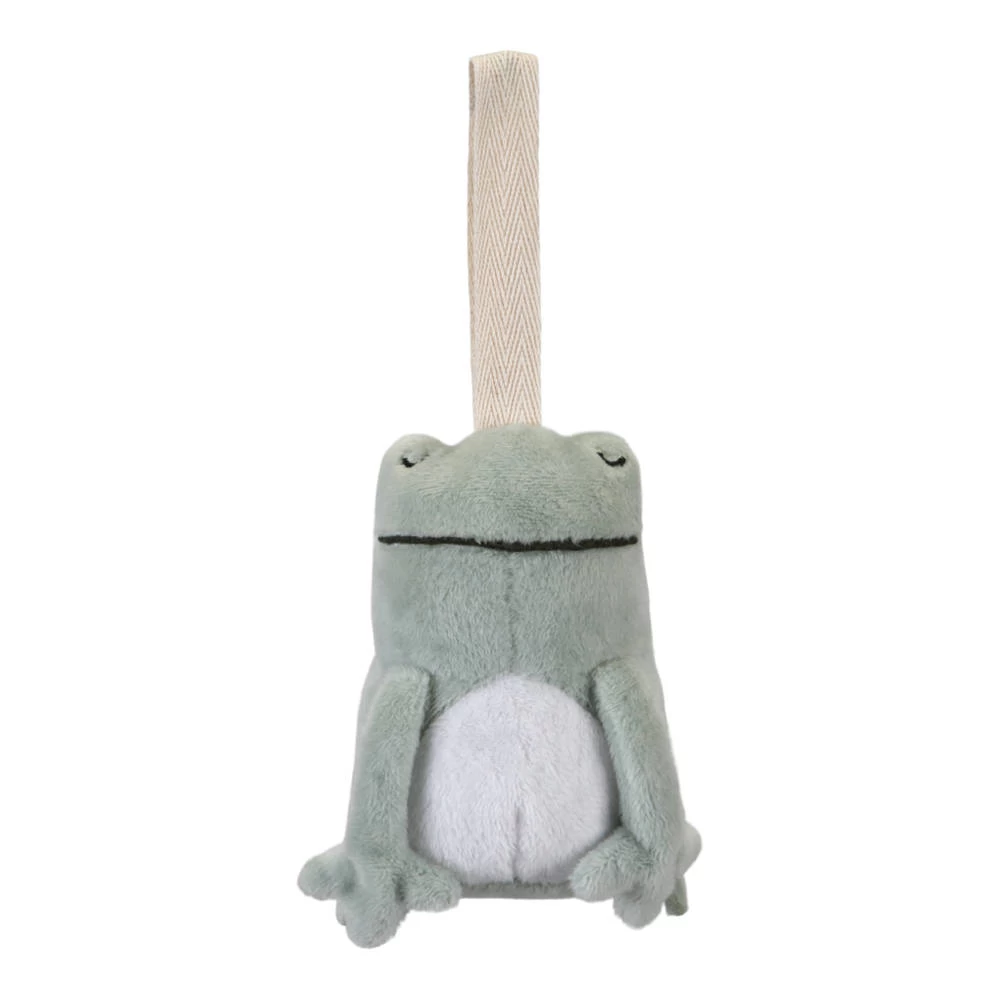 Little Goose heeft knisperende vleugels, de slak is versierd met een spiegeltje, de kikker maakt een schattig piepje, de bloem is een rammelaar en het bijtje laat haar belletje klinken als ze een klein duwtje krijgt.