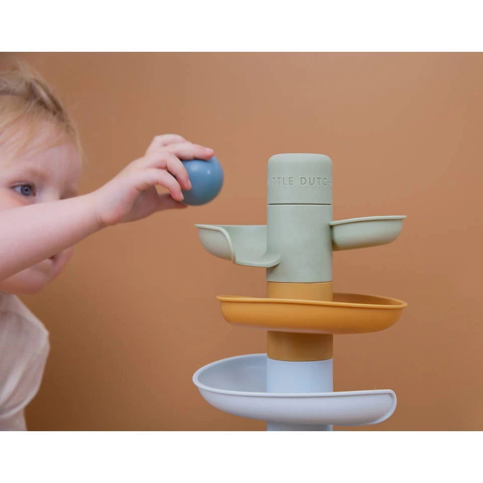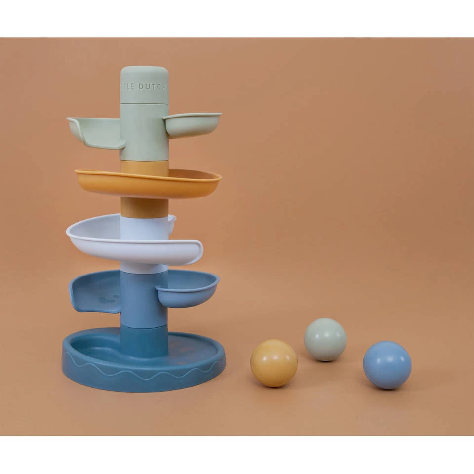 Laat de bal maar rollen! De spiraaltoren van Little Dutch zorgt voor eindeloos veel speelplezier. Deze kleurrijke set bestaat uit 5 subtiel gekleurde delen die jouw kleintje gemakkelijk op elkaar stapelt. Laat de ballen een voor een op de bovenste laag vallen en kijk hoe ze achter elkaar naar beneden rollen en slingeren.
