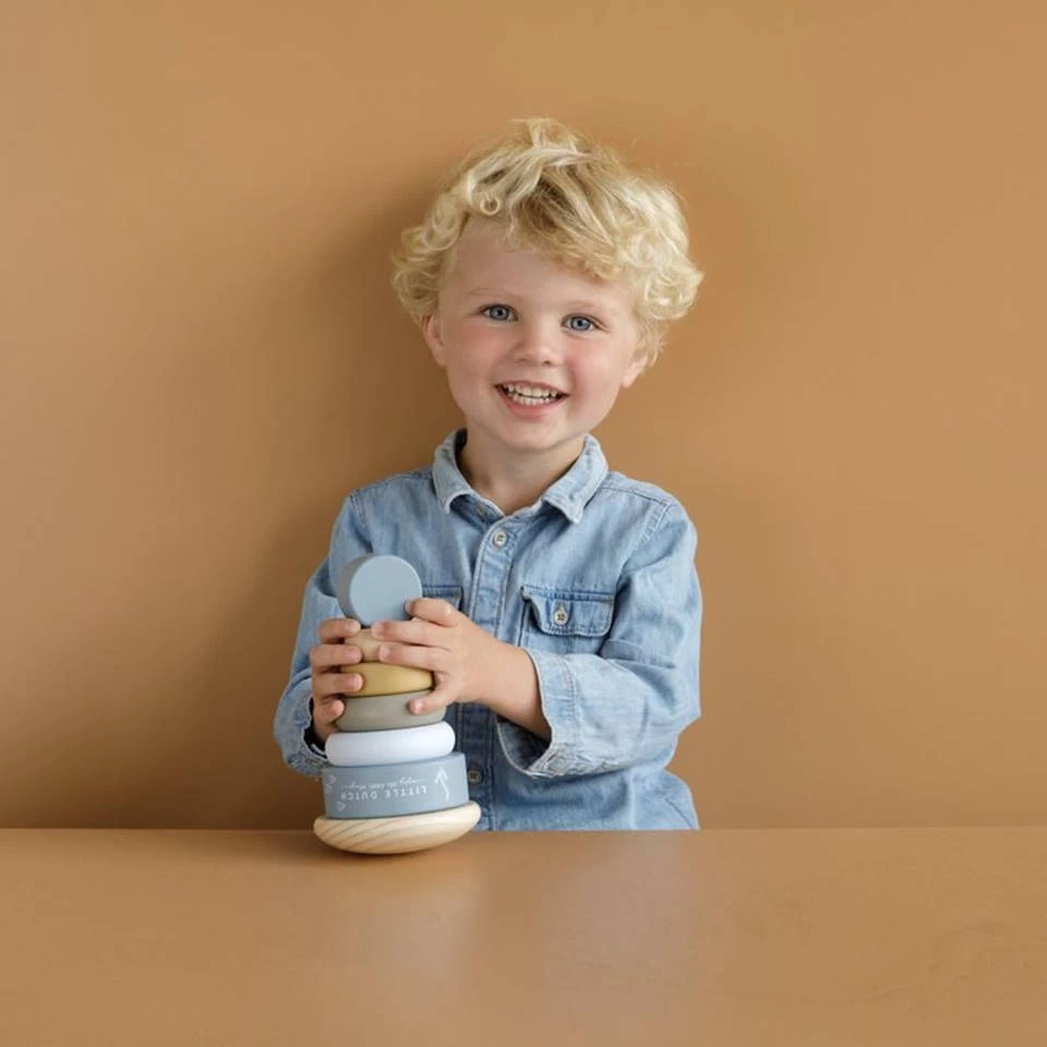 Deze Little Dutch tuimelringpiramide Ocean is een leuke bezigheid voor je kind. Zet de houten ringen in op volgorde en stapel ze dan op de piramide.
