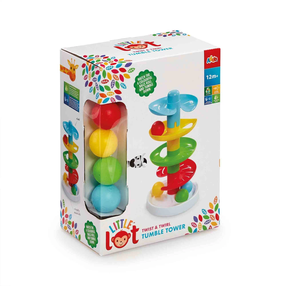 Kijk hoe de ballen rollen en vallen met deze draai en tuimeltoren van Little Lot. Dit peuterspeelgoed stimuleert het reactievermogen van kinderen terwijl zij observeren hoe de kleurrijke ballen rond de toren draaien voordat ze op de bodem vallen. Kleine, grijpgrage handjes vinden het heerlijk om de heldere ballen te pakken. Spelen met de toren stimuleert de ontwikkeling van de fijne motoriek, oog-handcoördinatie, het reactievermogen en het onderscheiden van kleuren.
