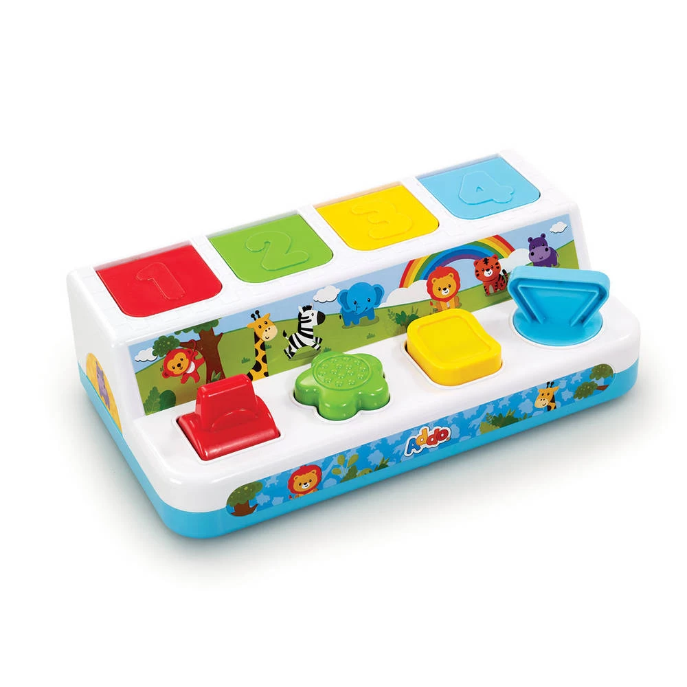 Er zijn veel nieuwe vriendjes te ontdekken met de kiekeboe dieren speelset! Met dit klassieke peuterspeelgoed kun je vormen, cijfers en dieren ontdekken die tegelijkertijd de ontwikkeling van de spraak en taal stimuleren. Druk op de knop om hallo te zeggen tegen de vriendelijke zebra en tik op de bloem om een brutale aap te laten verschijnen. Of druk op de knop om een olifant tevoorschijn te toveren! De mogelijkheden zijn oneindig. Met deze set leren kinderen spelenderwijs nieuwe woordjes en wordt de fijne motoriek, het reactievermogen en het onderscheiden van kleuren ontwikkeld.
