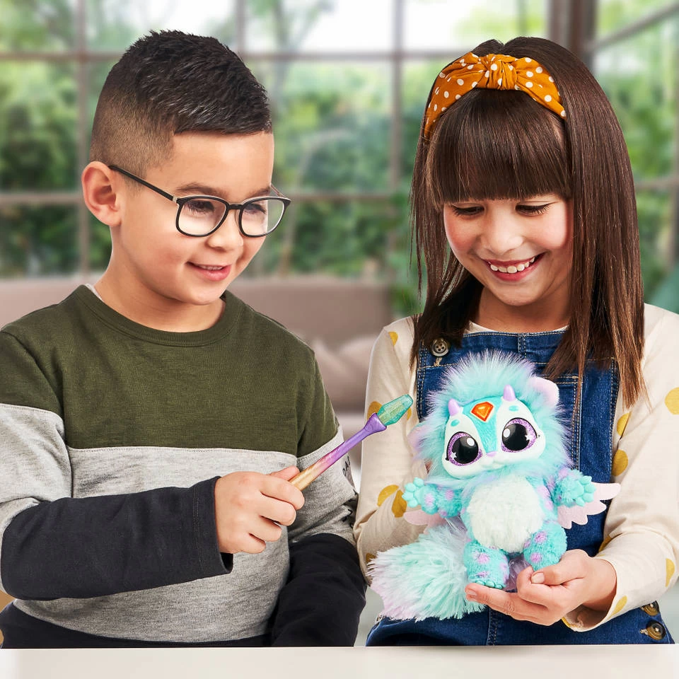 Ervaar échte magie met de Magic Mixies magische ketel! Wie tover jij op magische wijze uit de ketel tevoorschijn? Je ketel wordt geleverd met een speciale toverstaf en alle magische ingrediënten die je nodig hebt om een toverdrankje te mixen, waaruit je eigen schattige, interactieve vriendje zal ontstaan! Voeg stap voor stap alle magische ingrediënten, zoals de kristallen edelsteen en de magische veer, toe aan je ketel. Na elke stap zal de ketel het ’tik tik tik’ signaal geven. Tik dan 3 keer met je toverstaf op de ketel en de ketel zal reageren met groen licht en verschillende geluiden. Je zult versteld staan hoe uiteindelijk je pluchen Mixie uit de echte mist tevoorschijn komt. Je Magische Mixie reageert op aanraking en op je toverstok. Hij vindt het heerlijk om samen met jou toverspreuken uit te voeren en je kunt zelfs een wens doen als zijn edelsteen oplicht! Hoe meer je je Magische Mixie koestert en verzorgt, hoe sterker zijn energieniveau wordt.
