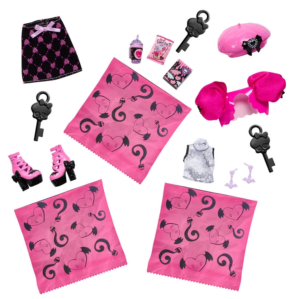 Het wordt nog leuker met de Skulltimate Secrets Draculaura-pop van Monster High! Deze pop heeft meer dan negentien verrassingen, waaronder kleding, accessoires en leuke thema-items. De kleurverrassingstechnologie en verschillende vakjes zorgen voor magie en mysterie. De kist van Draculaura is ideaal om alles in op te bergen en verhalen mee te verzinnen.
