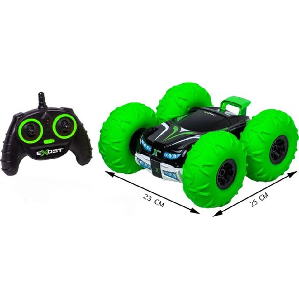 Doe met deze superstoere, op afstand bestuurbare Exost 360 Tornado stuntauto mee aan de race. Deze groene auto is gemaakt op een schaal van 1:10.