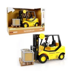 Op je bouwplaats mag deze vorkheftruck met licht en geluid niet ontbreken! Met dit voertuig kun je helpen om de bouwwerkzaamheden te vergemakkelijken. De vorkheftruck is gemaakt op een schaal van 1:12 en werkt op een AG13-batterij. Dit voertuig is gemaakt van kunststof en uitgevoerd in een mooie kleur.