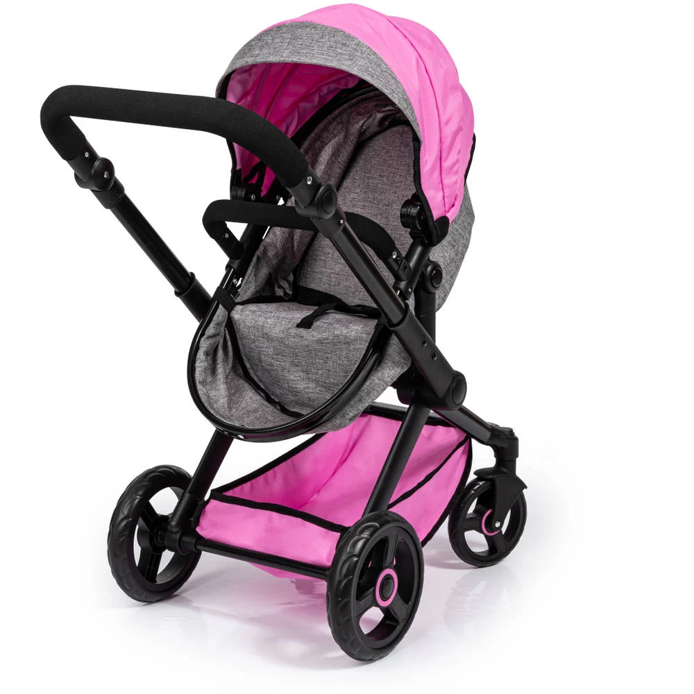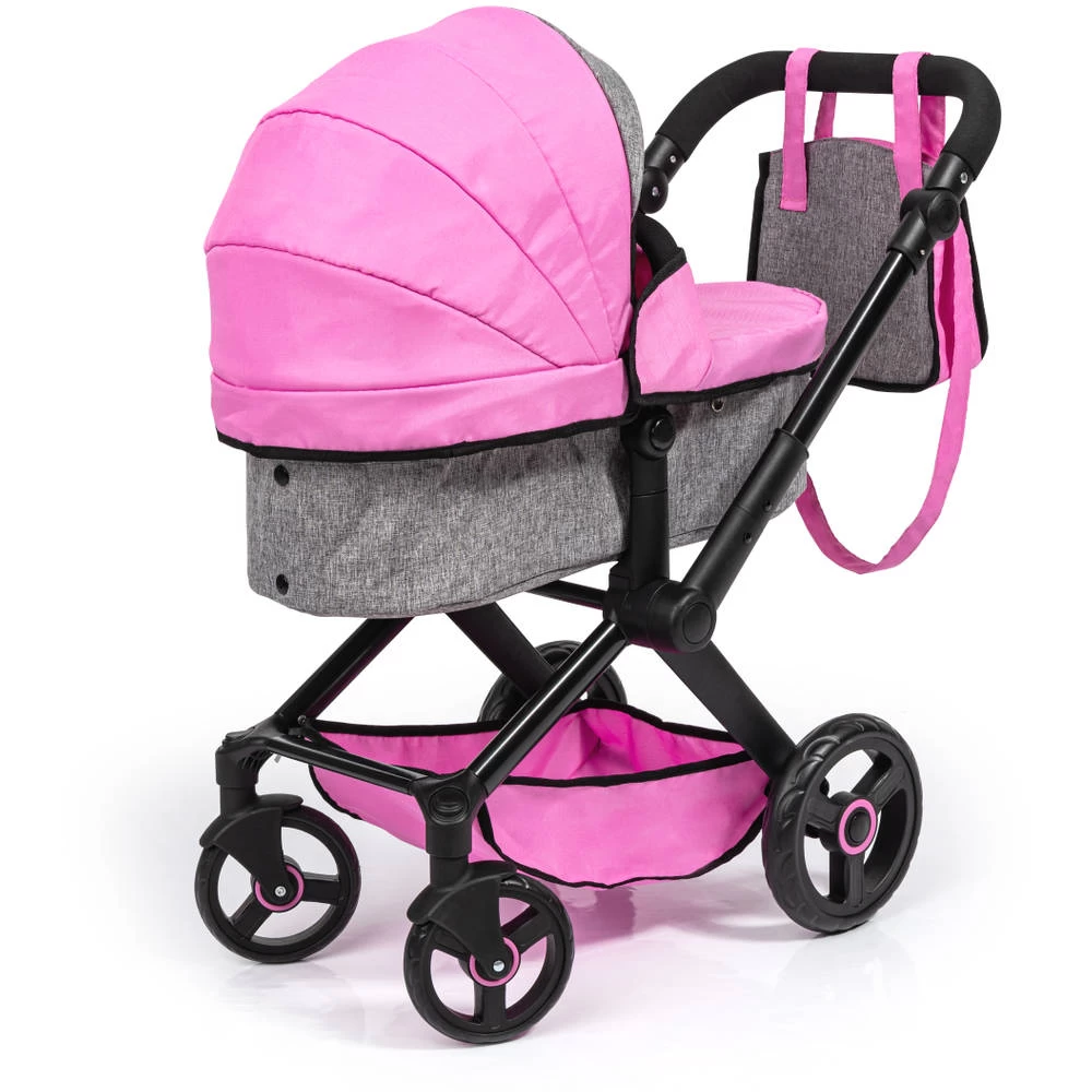 Neem je pop gezellig mee in deze roze XEO poppenwagen. Deze combipoppenwagen heeft een extra tas en een verstelbaar handvat.