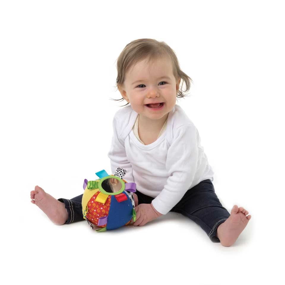 Met deze kleurrijke en zachte Playgro Loopy Loops bal kunnen kinderen lekker spelen. Door de vele heldere kleurtjes en uitdagende lintjes is deze zachte bal een ware ontdekking voor je kindje. De bal is voorzien van een spiegeltje en een grappig geluidje die beide heel leuk zijn voor de nieuwsgierige baby.