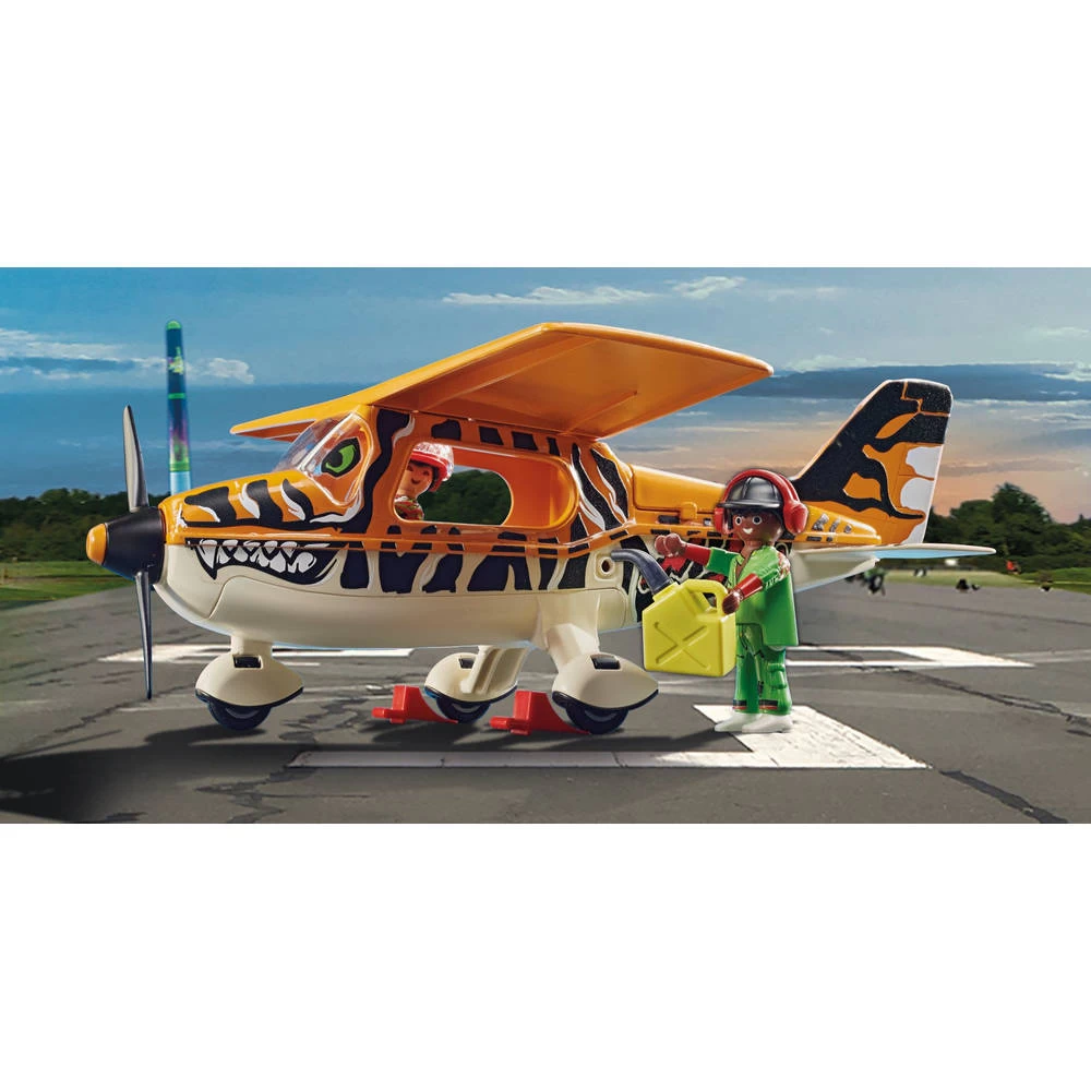- Beleef geweldige avonturen in de lucht wanneer je met het Playmobil Air Stunt Show propellervliegtuig Tiger speelt.