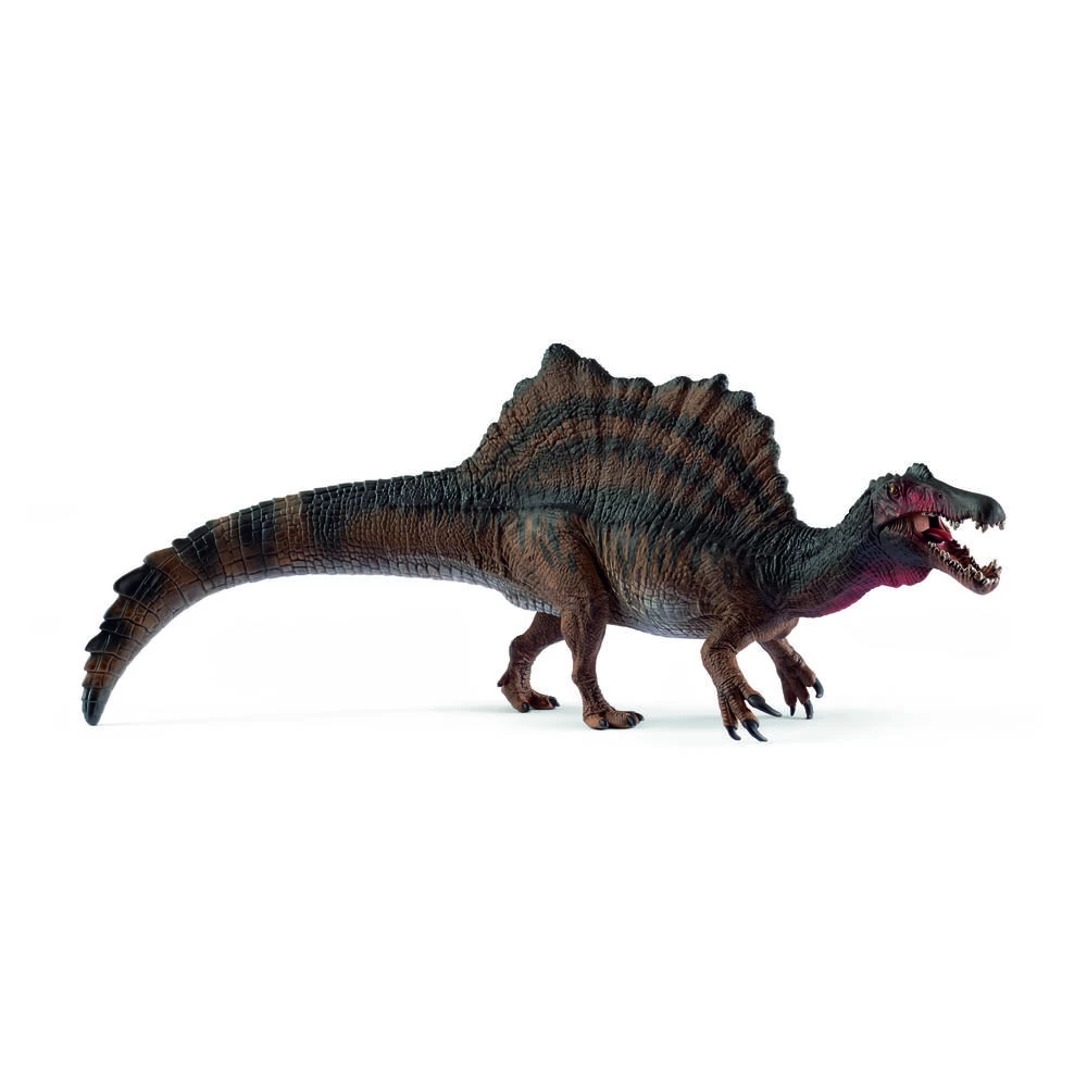 Voor deze dinosaurus van Schleich hoef je helemaal niet bang te zijn. Hij speelt graag met je! Maar kijk wel uit, want de Spinosaurus was één van de gevaarlijkste dinosaurussen. Hij wordt beschouwd als de grootste carnivoor omdat hij zelfs groter was dan de Tyrannosaurus Rex en de Giganotosaurus. Hij kan gemakkelijk worden onderscheiden van de andere twee dinosaurussen door het stekelige zeil op zijn rug en zijn krokodilachtige snuit.