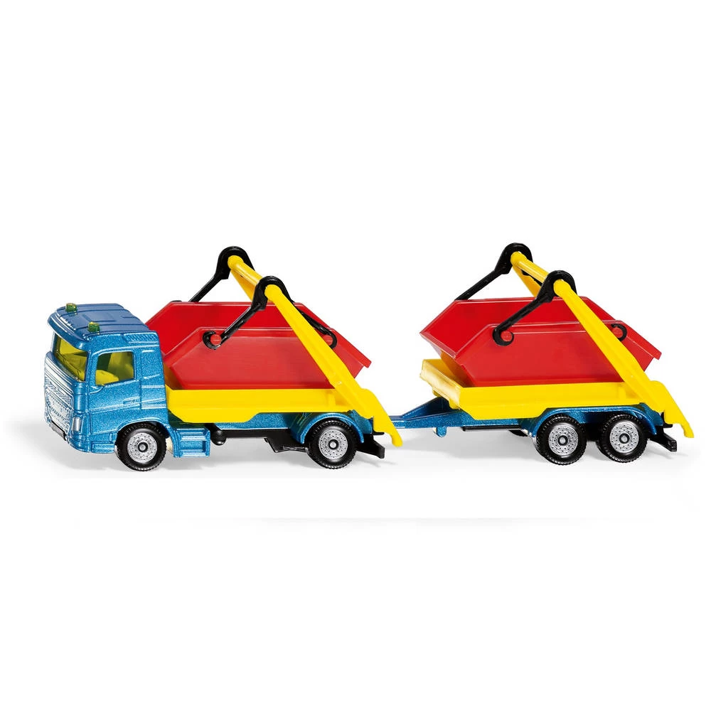 - De Siku vrachtwagen met afvalcontainer en aanhanger kan je al je bouwafval in kwijt.