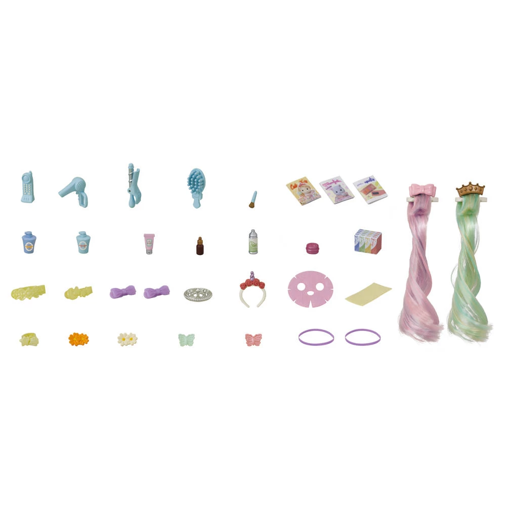 Ponyfans zijn dol op de Sylvanian Families pony’s kapsalon. Deze stijlvolle set bestaat uit een te gekke kapsalon en het zijdezachte ponymeisje Sally. Je krijgt de haaraccessoires en make-up die nodig zijn voor een totale make-over erbij. Gebruik de haaraccessoires om het haar van het ponymeisje te stylen.