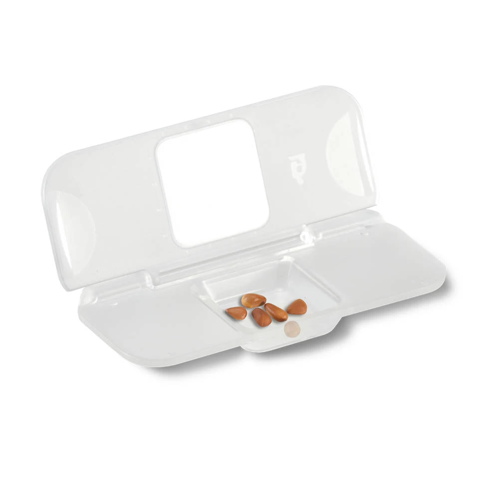 - Bekijk zelf verzamelde objecten in de twee blanco slides of plaats grotere objecten in het bakje om deze van dichtbij te bekijken.
